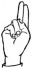 На ћирилици написано ПАУН РАДИЋ састоји се из 9 слова [?]. Исписано ћириличном једноручном азбуком за глувонеме: